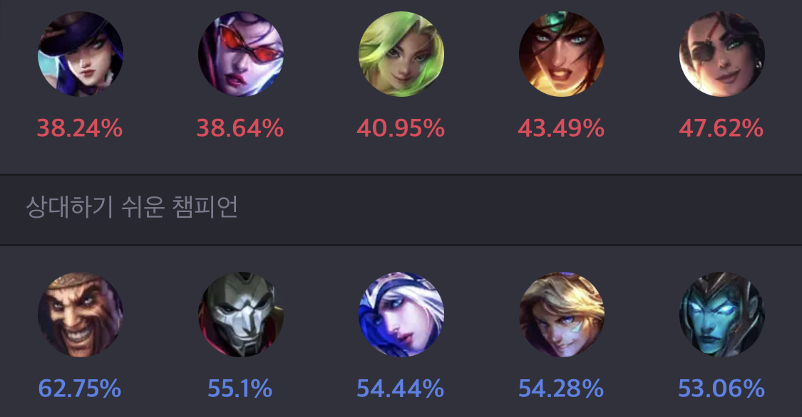 (보통 원딜 챔피언이 상대하기 어려움