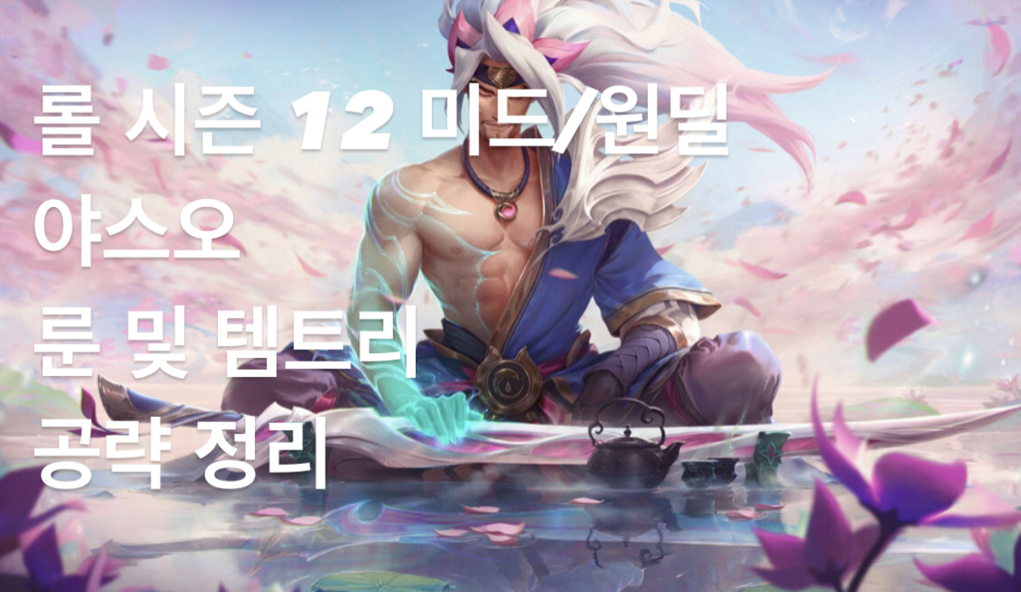 안녕하세요. 오늘은 롤 시즌 12 미드. 원딜 야스오 룬 및 템트리 공략을 정리해보았습니다.
