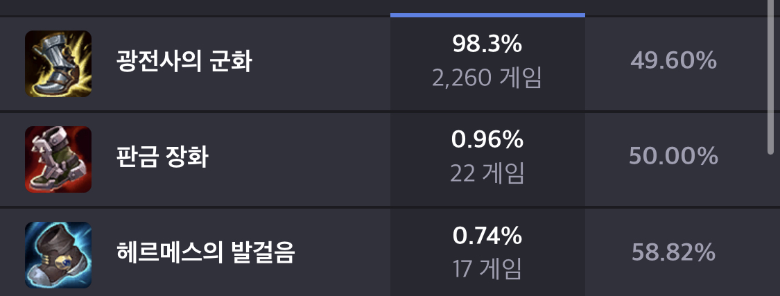 신발은 무조건 광전사의 군화를 가는 것을 추천드립니다. 광전사의 군화는 이동 속도와 공격 속도를 상승시켜주기 때문에 야스오에 가장 적합한 신발이죠.