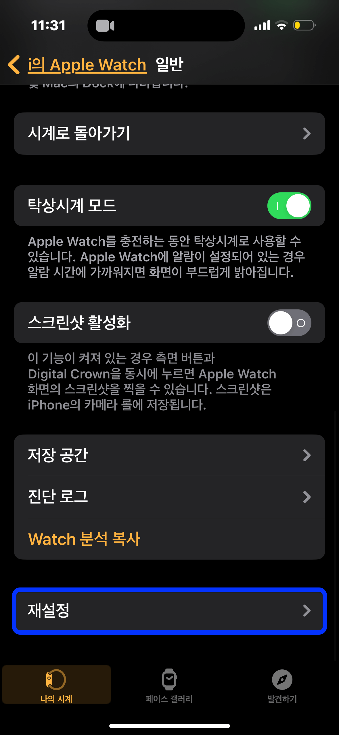 5. 애플워치 설정에 들어가 [재설정]에 접속합니다.