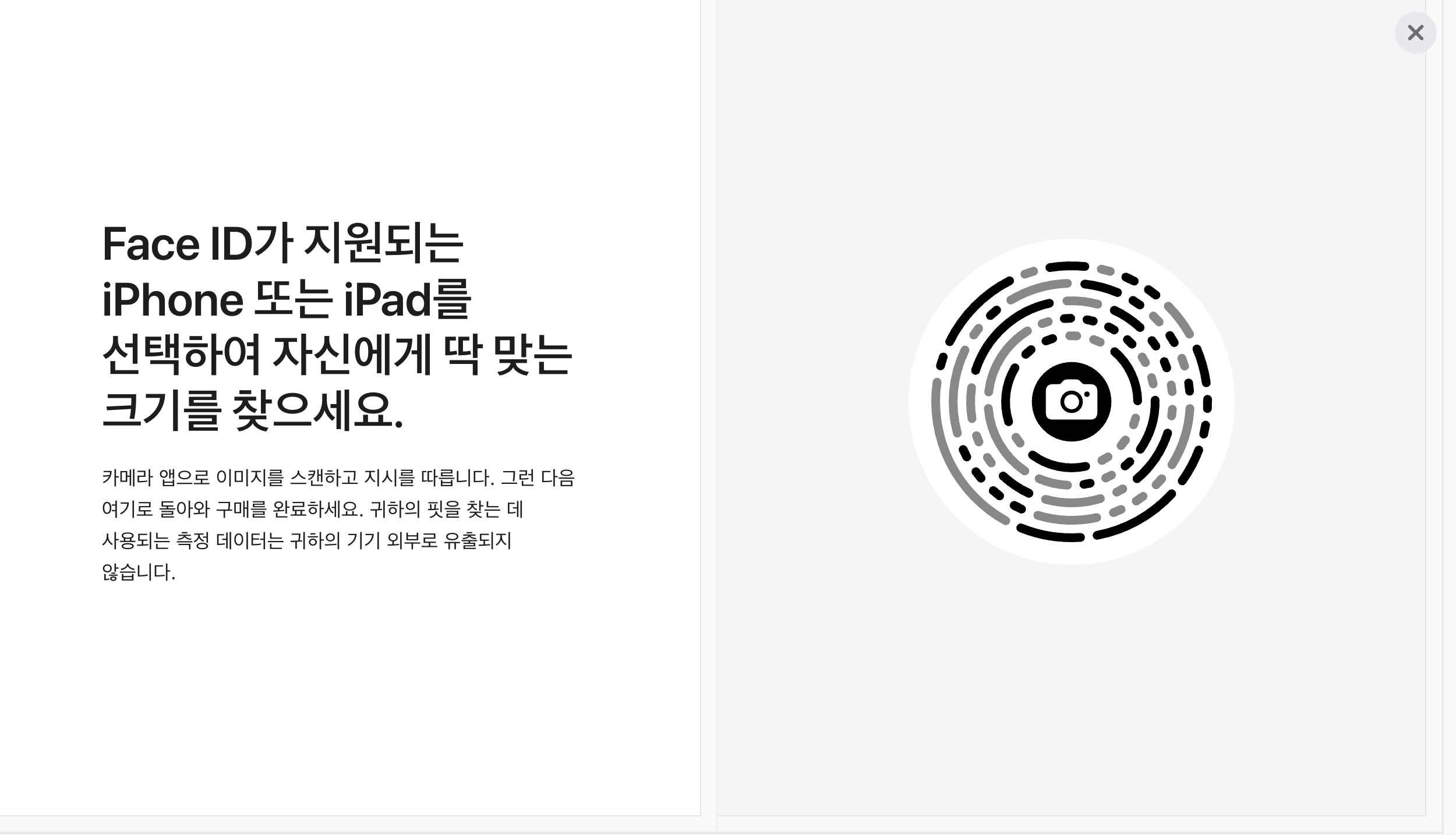 4. Fac ID 지원 기기 아이폰 또는 아이패드를 통해 카메라를 스캔합니다.