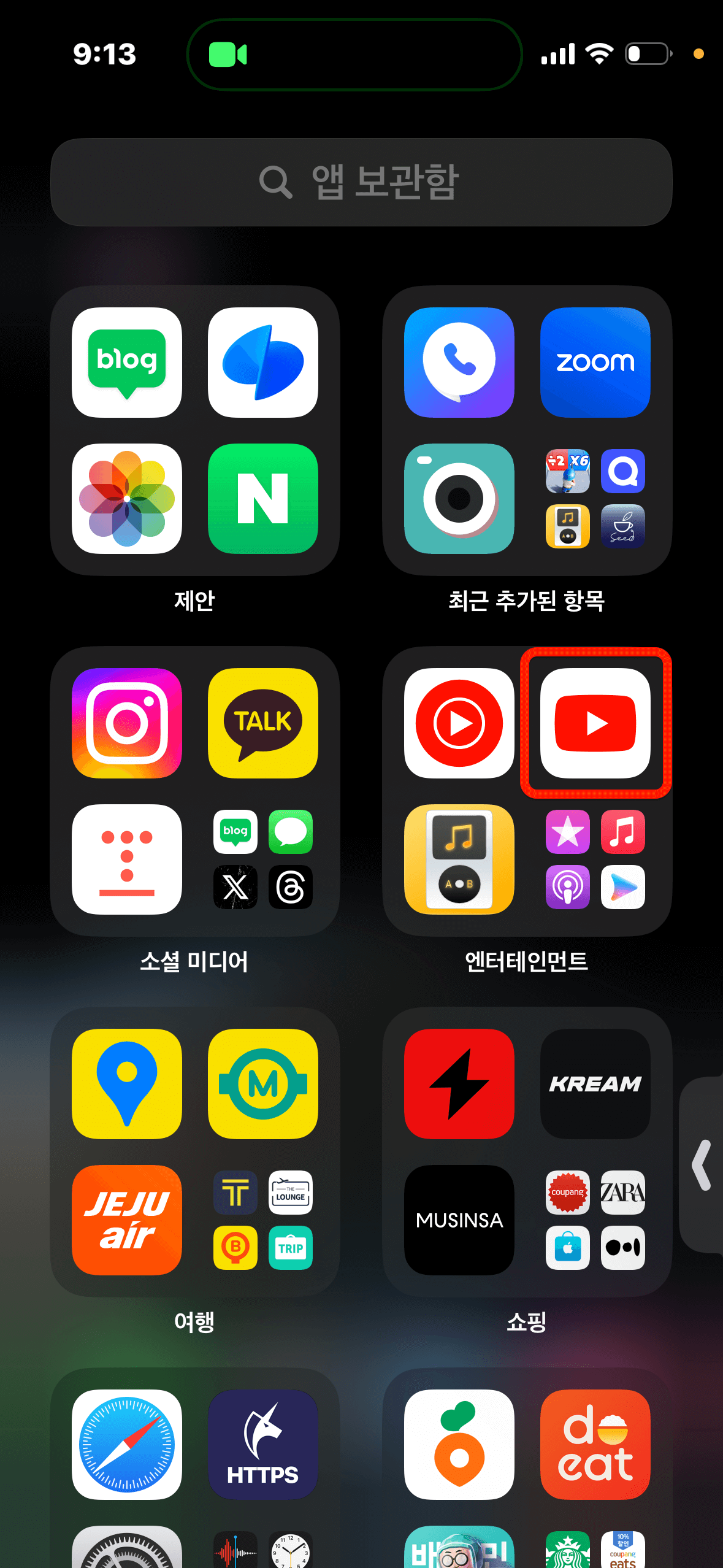 1. 모바일에서 유튜브 어플에 접속합니다.