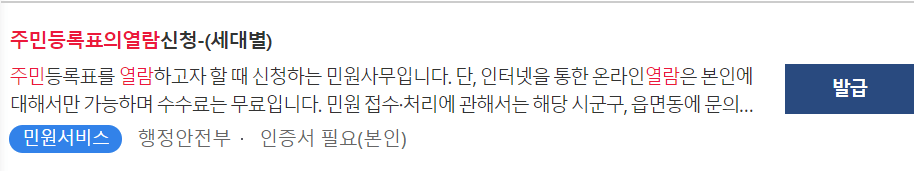 로그인이 된 상태라면 바로 들어가서 민원 발급 신청 및 열람하실 수 있습니다.