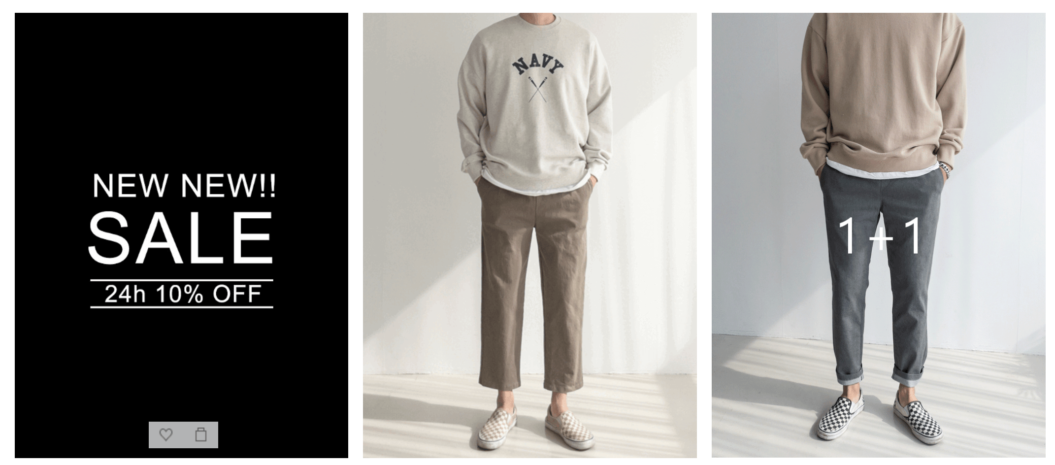주로 팬츠 위주로 구매하는 것을 추천드리며 이외에도 1+1 행사가 있어 저렴하게 구매하실 수 있습니다.